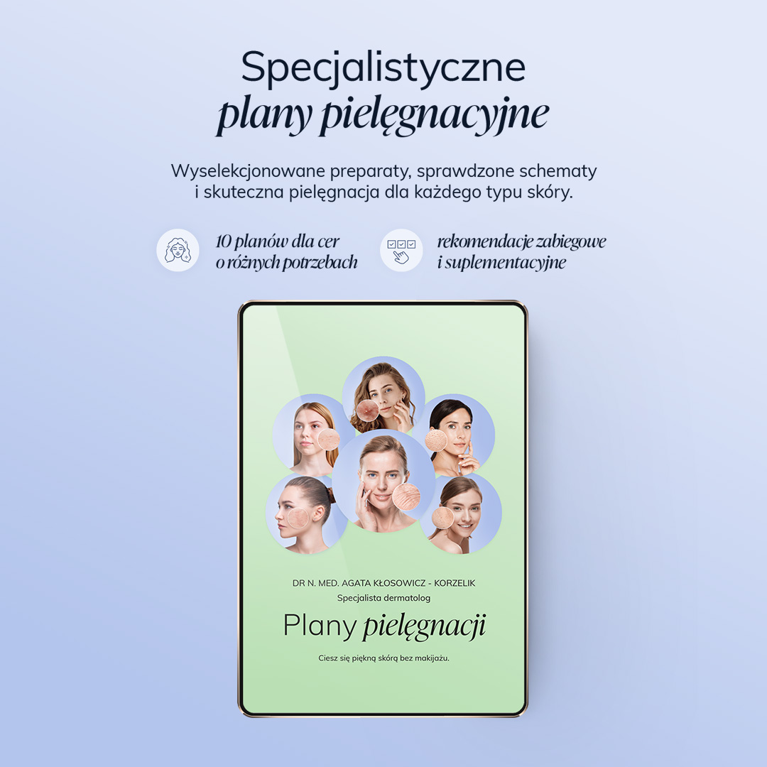 E-book „Plany pielęgnacji” to zbiór gotowych, minimalistycznych schematów pielęgnacyjnych dla różnych typów skóry – od cer trądzikowych po dojrzałą i naczynkową.